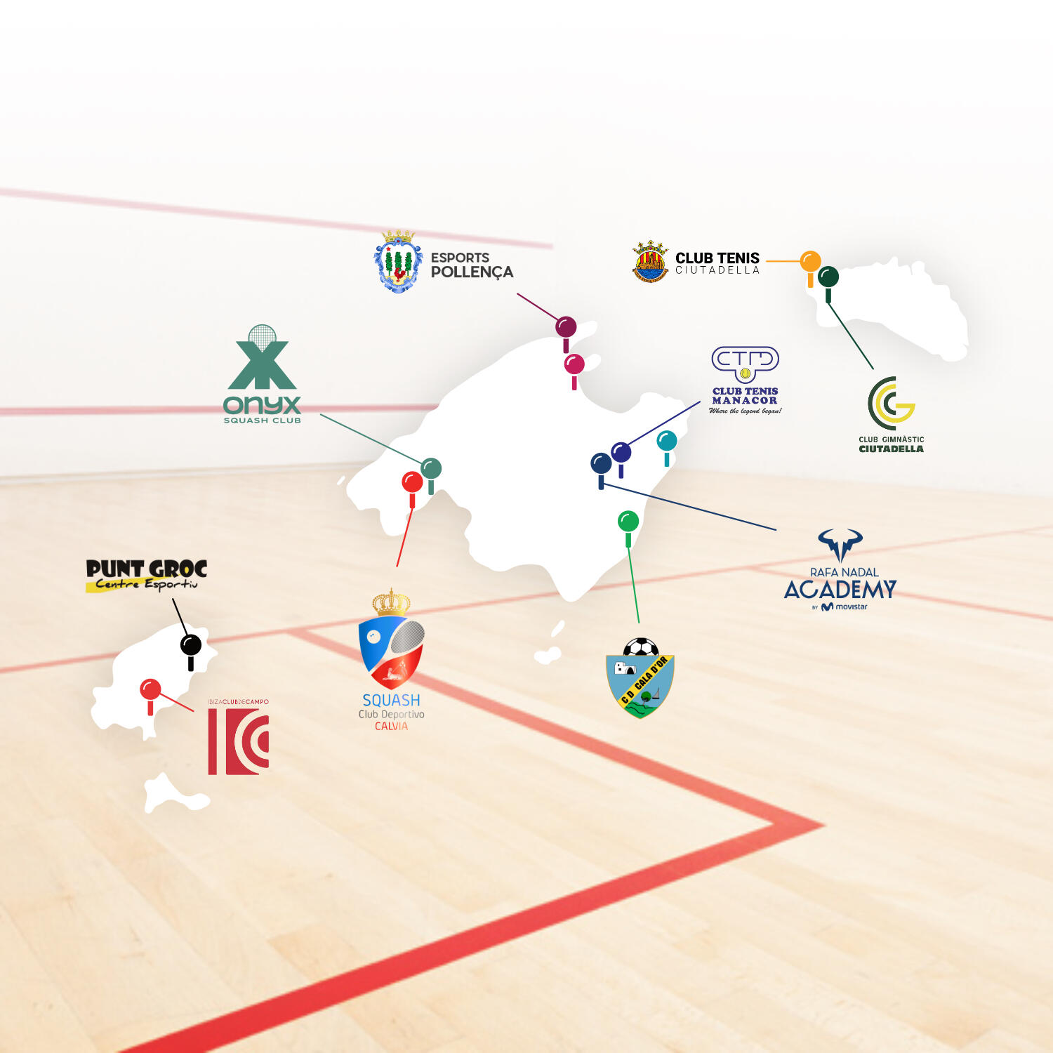 Contamos en nuestras islas baleares con unas 15 pistas de squash, las cuales se pueden hacer uso en diferentes clubes deportivos.